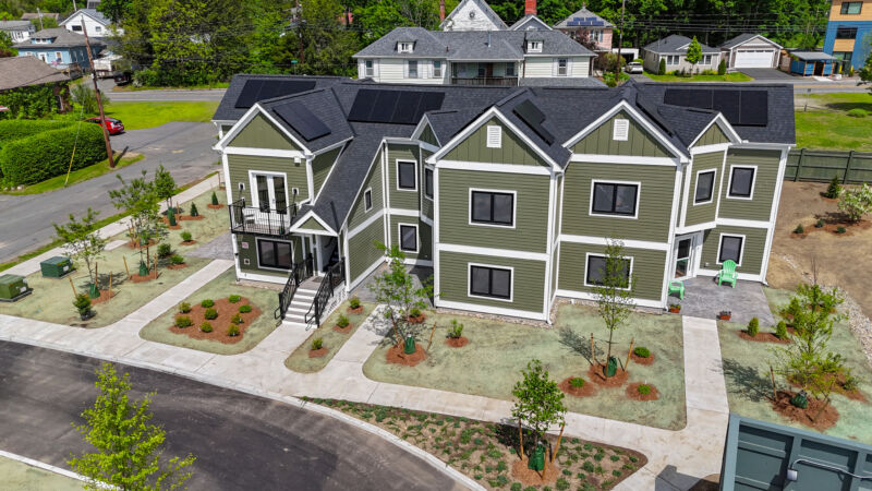 The new affordable housing development in Northampton, MA features 20 modern townhouse-style apartments in a mix of one-, two-, and three-bedroom units. Designed for households at 30% and 60% of the Area Median Income (AMI), the homes include all-electric utilities, in-unitlaundry, private outdoor spaces, and contemporary finishes.